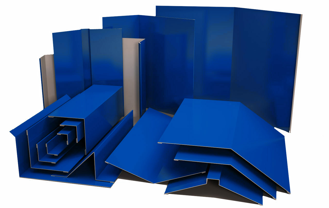 Фасонные элементы — металлические детали для надежного сопряжения узлов конструкции, защиты стыков от влаги и внешнего воздействия, а также декоративного оформления. Они скрывают дефекты монтажа и придают зданию презентабельный вид. Обычно изготавливаются из оцинкованной стали с полимерным покрытием в цвет панелей, могут иметь любую форму и оттенок по каталогу RAL. Правильно подобранные элементы увеличивают срок службы здания и обеспечивают его эстетичность.